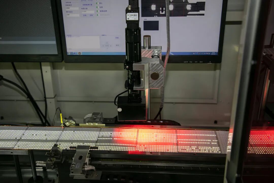 LED柔性灯带由于体积小、安装简单,在照明行业流通领域一直占有举足轻重的地位,与LED球泡、LED灯管形成三足鼎立之势,球泡灯和灯管的生产已经完成自动化的转型升级,产业更加聚集,规模化效应带来的成本下降为LED的普及创造了更好的条件。但是目前LED灯带仍处于劳动密集型状态,导致LED灯带厂家分布零散,品质参差不齐。为了响应“科技创新”的战略需求,木林森CSP团队对柔性灯带的设备、材料、制程等环节做了专项的攻克,开发出卷对卷生产模式的全自动CSP柔性灯带生产线,为客户提供了全方位的解决方案,实现了LED柔性灯带的深度创新。